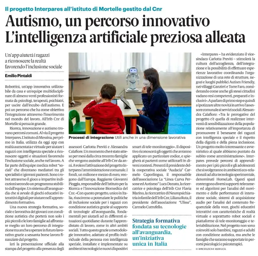 Autismo, un percorso innovativo – L’intelligenza artificilae preziosa alleata – Gazzetta del Sud