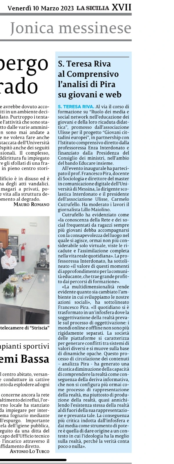 MESSINA, 3 FEB – L’Associazione Ulisse, insieme all’Istituto Superiore ‘Minutoli’ di Messina, all’interno del PCTO (Percorsi per le Competenze Trasversali e per l’Orientamento) ex Alternanza Scuola