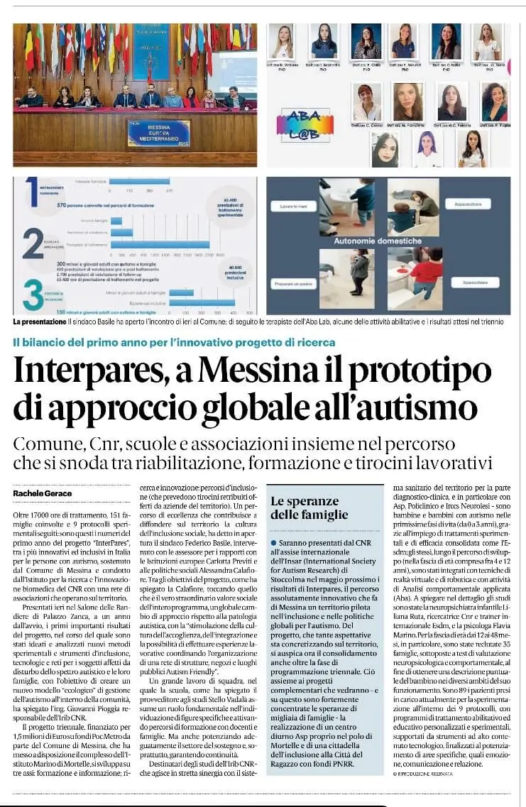 https://messina.gazzettadelsud.it/foto/cronaca/2022/12/10/autismo-a-messina-il-modello-dellapproccio-globale-con-il-progetto-interpares-1c641e3f-3978-457c-b944-01e052d847d0/#.Y5RiyMcKb1U.whatsapp Fonte: Gazzetta del Sud Online